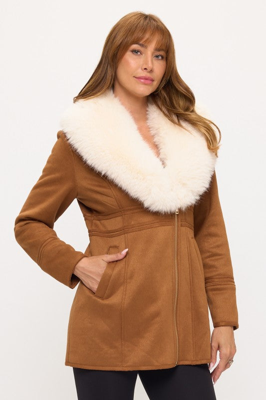 CLASC0010: Luxe Faux Fur-Collar Tailored Coat
