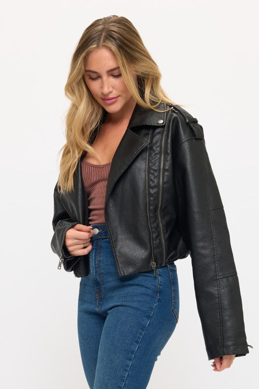 CLALJ0095: Vintage-Inspired Vegan Leather Biker Jacket